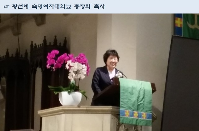 숙명여자대학교 음악대학 선후배님들의 황홀한 음악회 개최를 축하드립니다.  특별히 수고하신 이현순 후배(숙명여대, 진명여중고) 회장님 이하 모두 한 마음으로 아름다운 연주회를 마치게 됨을 자랑스럽게 생각합니다. 이미선 반주자님과 창학 110주년 때 만났고, 또 함께 했던 후배님들의 얼굴들이 특히 많이 보이네요.  오랫만에 황선혜 총장님도 얼굴을 대할 수 있어 더욱 기쁩니다. 우리 숙명의 음악인들의 아름다운 연주 모습은 예전 학생때 모습그대로 입니다.  출연자님들 모두께 힘찬 박수를 보냅니다.