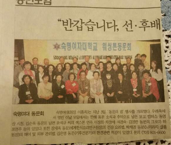 워싱턴 동문회에서 보내온 반가운 사진입니다
