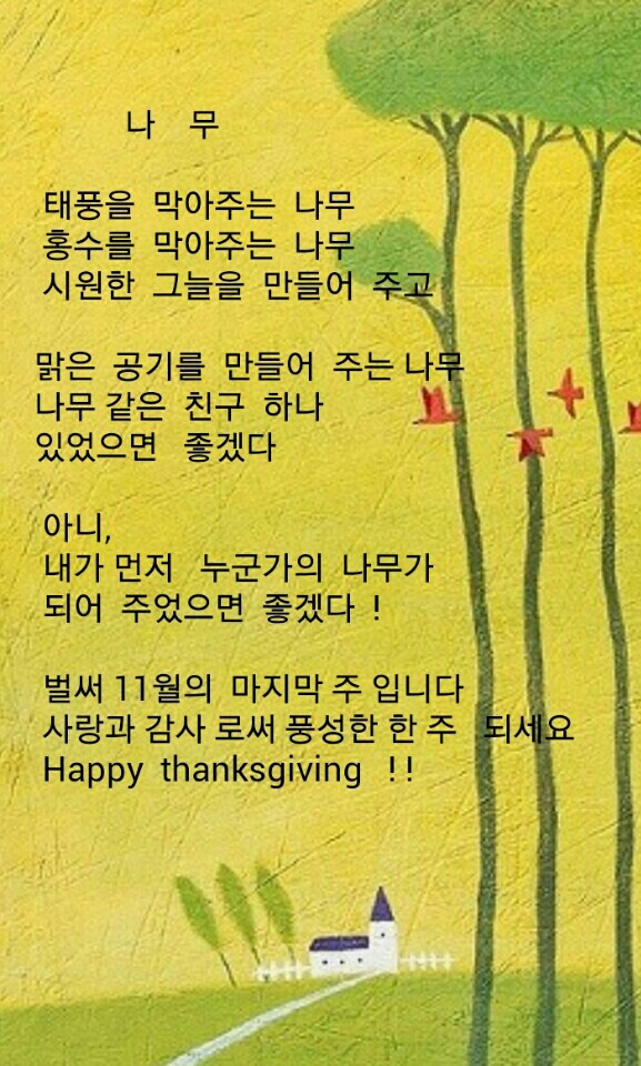 나무가 바람에 흔들리고 휘어지는 것은부러지지 않기 위함입니다.우리네 인생도 역시거센 바람과도 같은 시련이 몰아칠 때마다조금 흔들리기도 하고 더러 휘어지기도 할 것입니다.하지만 괜찮습니다.원래 나무든 사람이든조금씩 흔들리며그렇게 성장하는 법이니까요.-소중한 사람과 함께 읽는 책 중에서-