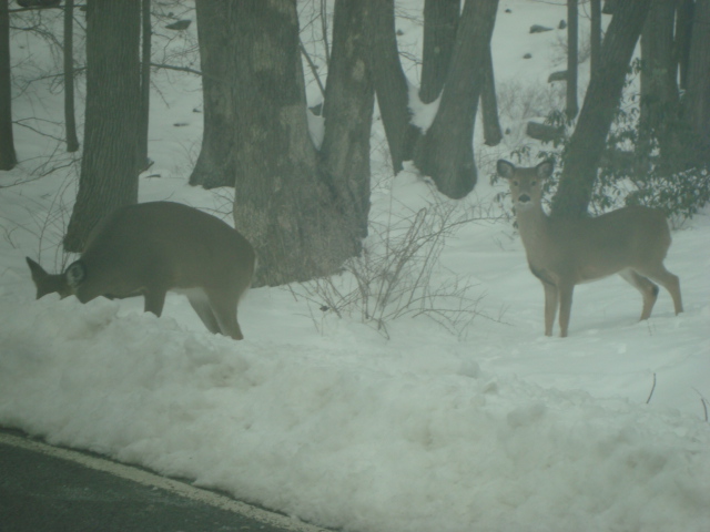 호숫가는 완전 눈으로 덮여있고 푹푹 빠지는 눈길의 산행은 보통 산행보다 두세배 힘들지요.하지만 깨끗하고 순백의 눈을 밟으며 우리가 아직은 이런 산행도 할 수 있구나 하는 자부심을 가진답니다. 사슴은 차안에서 찍었기 때문에 약간 부옇게 나왔네요.