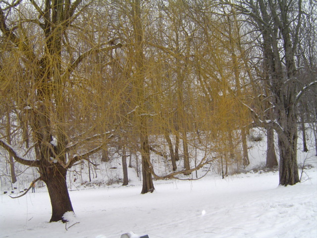 하얀 눈과 물오른 연두빛의 버드나무가지에서 봄을 느꼈습니다.