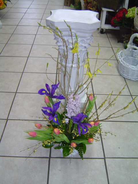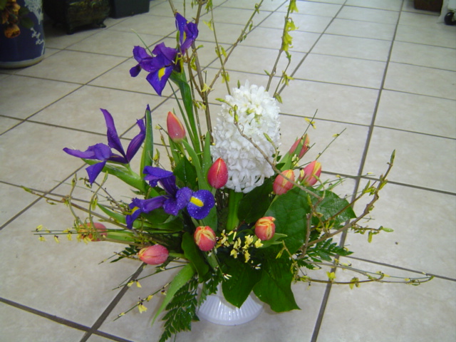 재료는 개나리(Forsythia), Iris, Tulip
