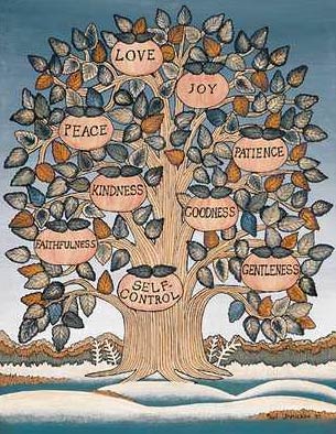 사랑, 희락, 화평, 오래참음, 자비, 양선, 충성, 온유, 절제.