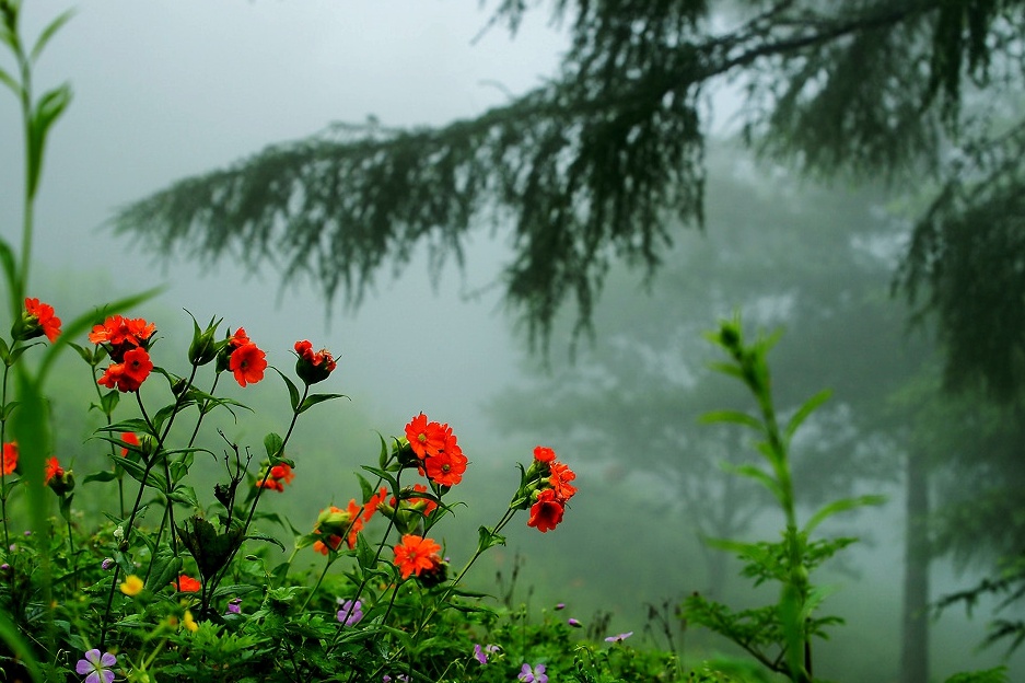 밤새 내린 비에 꽃잎 떨리고