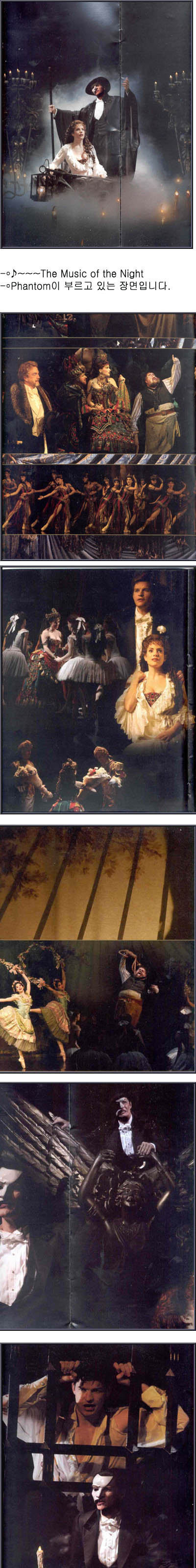 " The Phantom of Opera " 뮤지칼 중에서 유명한, 그 멜로디가 로맨틱하면서도 고풍스러운 멜로디의 여러 곡 중에서 가장 감명깊었던 노래 "The Music of The Night "를 들려드립니다..무대장치도, 무대의상도 화려하고, 내용도, 모두 참 재미있는 뮤지컬이었습니다...공연이 끝난후 극장에서 뮤지컬 CD를 구입하여 " The Music of the Night " ♪~~~를 올려드리오니 즐겁게 감상하세요~~~