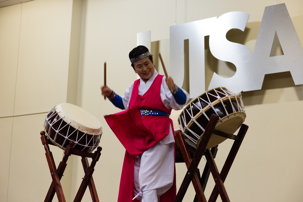 4월11일 공연중 일부분이며 뒷 배경 UTSA ( Univ. Of Texas in San Antonio ) 대학에서 매년 김치 축제를합니다. 4년간 남편( 양재헌 한인회장 재임 시 / 박방자 부회장겸직 홍보담당 재임) 총영사관의 협조와 대학의 협조로 결실을 맺어 이제 학점제로 진행되고있습니다. 약 400 여명의 학생들과 외부 귀빈들께 여러가지 김치 종류와 밥, 불고기를 맛보이고 한국에 대한 홍보를 합니다. 여러 대학생들이 한국에 대하여 지대한 관심이 높고 한국에 영어 총 영사관 홍보로 TALK ( Teach And Learn in Korea program) 즉 한국정부에서 권장하는 프로그램  Korean government service-Learning Scholarship program 입니다.