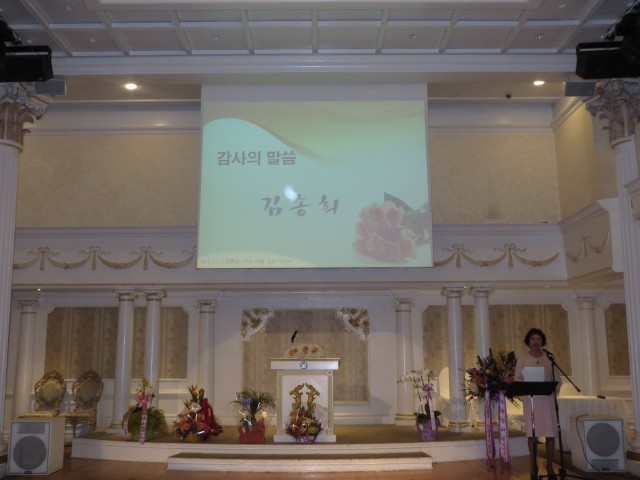 오늘 시집 발표 행사장에서 많은 하객을 맞으시는 김송희 동문님의 모습에서