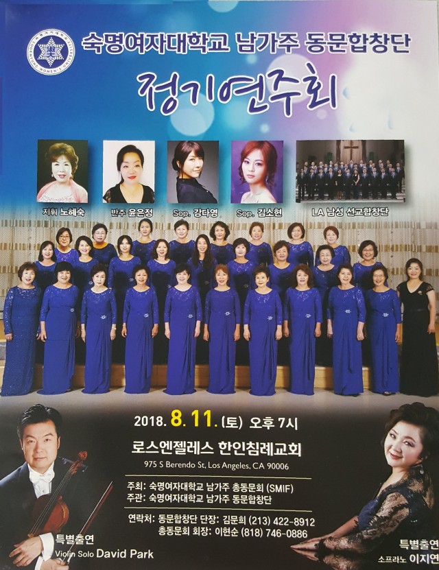 축, 숙명여대 남가주 총동문회, 남가주 동문합창단 정기공연을 진심으로 축하드립니다 !
