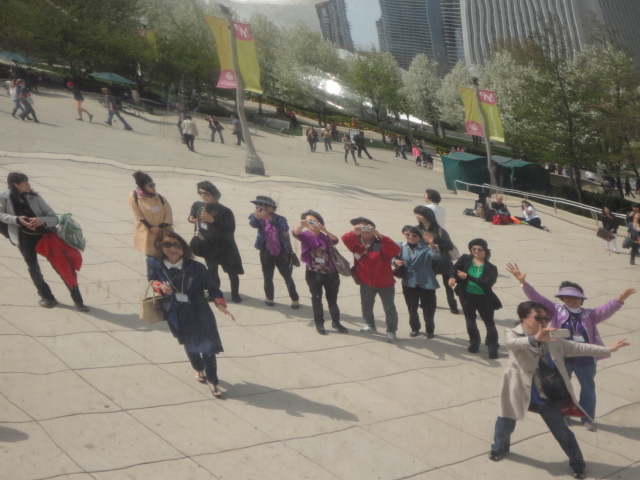 세번째는 야외 음악당,조형물에 우리의 모습을 비추느라 show를 합니다.