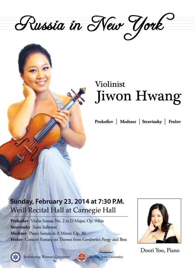 음대 02졸업생 황지원 바이올린 독주회 (카네기홀 데뷔) 알려드려요.