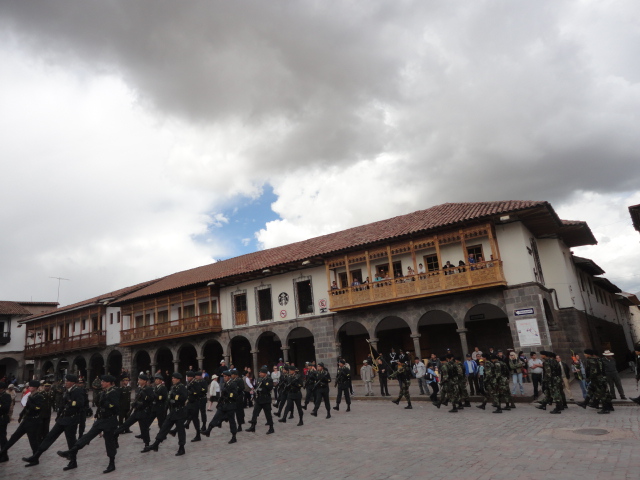 꾸스꼬 광장에는 일요일마다 군일 사열식이 있어 많은 사람들이 복작거리고 바닥,담들이 거의 돌로 지어진 건축이었습니다.