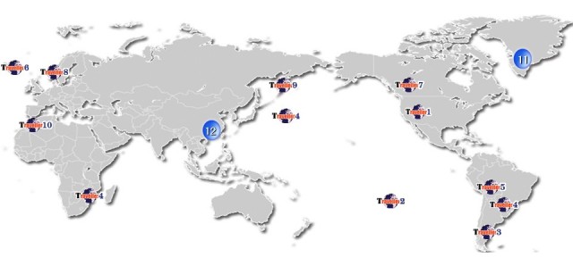 서사하라, 모로코, 알제리, 튀니지, 리비아, 이집트, 모르타니아, 니제르, 수단, 차드등이