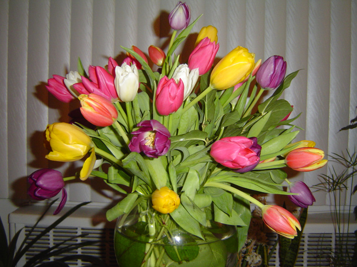 입이 넓은 항아리에 레몬잎과 색색의 튜우립으로 항아리 입의 여분이 없을 정도로 빽빽히 꽂아 일찍 봄을 만끽해 봅니다.