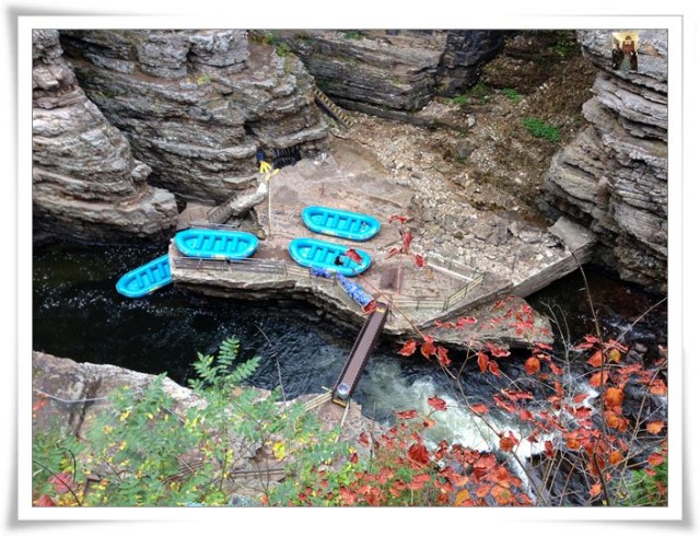 뉴욕 업스테이트 아디론 댁 스테이트 팍의 Ausable Chasm의 아름다운 풍광을 감상하세요.