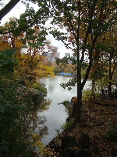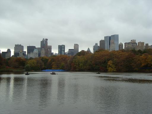 도심속의 단풍의 물결,호수,호수를 가르는 카누(?) 그림같은 아름다움입니다.