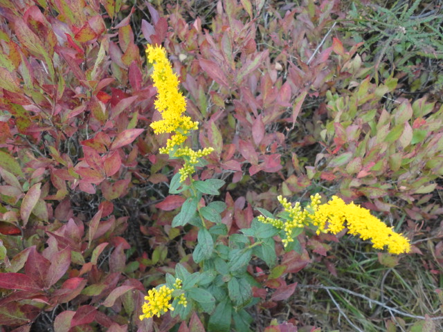 가을의 들꽃,블루베리 잎사귀가 제일 먼저 가을인가 하고 붉으레 물들기 시작했어요.