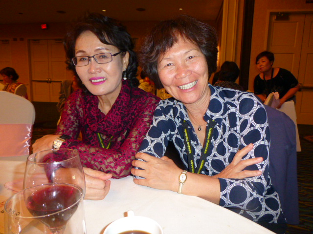 <font Color=green><font Size=2>필라델피아 팀 3명은 비행장에서 리조트호텔 까지 시간이 늦어져 첫행사에 조금 늦게, 입고 온 그대로 트렁크까지 가지고 급히 뛰어 들어 갔답니다. 슬라이드 쇼의 각주 사진들도 제대로 못 보았답니다. 그린색 원피스를 입으신 북가주회장님(검은고양이)님의 친근함과 김아영님과 여흥을 맡으신 사회자님의 재치가 시작되었습니다. 또한 이현순 총동문회 부회장님의 소개로 이경숙총장님의 강연소개가 있었습니다. LA 거주하시는 동문님들께서는 많이 참석하셔서 함께 많은 은혜 받으신 줄 믿습니다. 석경숙 선배님과 옆좌석에서 식사를 함께 하여 특별히 사진을 함께 찍을 기회가 많았습니다. 아리조나 부부님 특별히 한번도 빠지지 않으시고 총동문회에 참석하셔서 반가왔습니다. 저는 가끔 인터넷에서 이경숙 총장님의 강연하신 내용을 접하기도 합니다.  인터넷에서 황선혜총장님의 활동들도 늘 접하고 있습니다. 모두 건강하셔서 우리 숙명의 이름을 드높여 주시기를 바랍니다. 감사합니다.