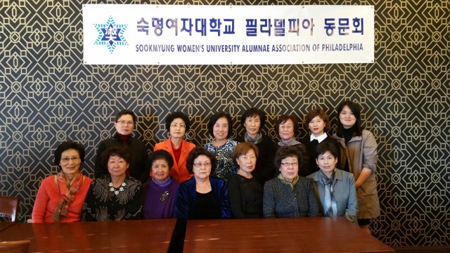 한국일보 신문 기사 내용을 글씨가 잘 보이지 않아서 다시 타이핑 하였습니다. 숙명여대 필라동문회, 모임 통해 동문 사랑 확인 !!! 숙명 창학 110주년 해외지회 동문 모교 방문 홍보도 함께 열려 !!! 필라 숙명여대 동문들이 한 자리에 모여 화합의 시간을 가졌다. 숙명여대 동문회(회장 안정혜)는 지난 6일(토) 노보루 식당에서 정기 동문 모임을 개최했다. 이날 모임에서는 동문들뿐만 아니라 동문 부부들이 모여 화합의 자리와 함께 모교 소식 등을 나누며 모교 사랑의 모습을 보여줬다. 특히 숙명 창학 110주년 기념 해외지회 동문 모교 방문에 대한 홍보가 있었다. 안정혜회장은 숙명여대가 2016년 올해가 창학 110주년을 맞이한다고 소개하였다. 순헌황귀비가 구구애족의 뜻으로 설립한 명신여학교가 5명의 여학생을 최초의 신입생으로 받아들여 국난을 극복하고자 한 것이 110년이 지나 10만 동문으로 성장하였다는 설명이다. 숙명여대는 대한민국의 역사와 함께 성장해온 기쁨을 그로벌 시대에 해외지회 동문들을 초대하여 창학 110주년을 자축할 행사를 가질 예정이다. 오는 5월18일(수) -23(월) 5박 6일간 해외지회 동문 및 가족을 초대하여 창학 110주년 기념행사를 거대하게 마련할 것으로 생각된다. 이번 행사는 창학 110주년 기념행사 [ 5월8일(수)-20일(금)와 한국의 유명 관광지 튜어 (다도해, 남해안, 한려수도 중 택 1코스 ] 가 있을 예정이다. 숙명여대는 졸업 후 50년이 지나면 인생의 명예박사학위를 받게 된다. 이런 영원히 남을 전통적 제도는 숙명여대 황선혜 총장의 아이디어로 시작되어 동문 모두가 건강하게 오래오래 모교를 사랑하고자 하는 마음에서 나온 것이다. 이번 동문 모임은 창학 110주년을 자축하며 더 큰 숙명의 미래를 향해 나아가고자 하는 동문들의 마음 가짐이 어느 때 보다 더 깊었다. 따라서 회원들은 뜻 깊은 만남의 자리를 확인하며 더욱 활성화되는 필라 지역 동문들이 참여를 다짐하는 시간을가졌다. 동문 모임은 화기애애한 가운데 뷔페로 마련된 점심 식사를 나누며 진행되었고 참석자 모두에게 준비된 선물을증정하였고, 다음 모임을 기약하며 아쉬운 작별을 고하고 헤어졌다.