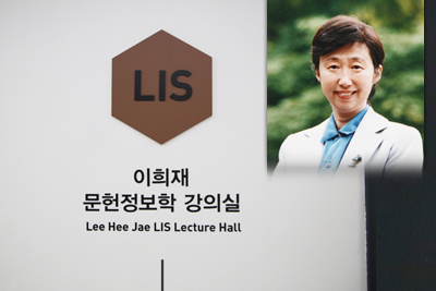 이희재 LIS 강의실 외벽에 설치된 이미지월 한편 이희재 명예교수는 1983년부터 모교 교수로 재직했으며 지난 2008 ~ 2012년에는 국립중앙도서관 자문위원을 역임했다. 생전에 문헌정보학 분야에 기여한 공로를 인정받아 대한민국정부 근정포장, 한국출판문화상 등을 받았다.