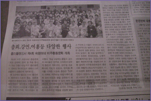 시카고 한국일보 - 미주숙명동문회총회 행사 보도
